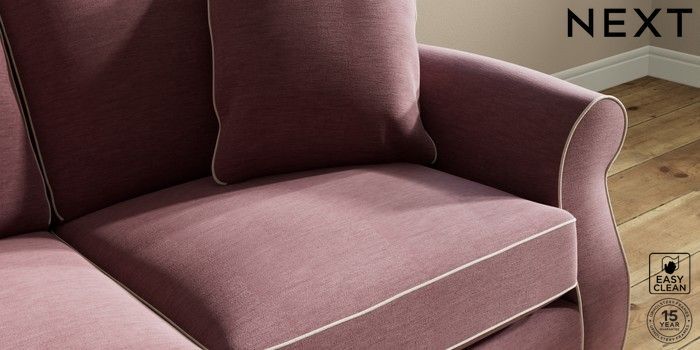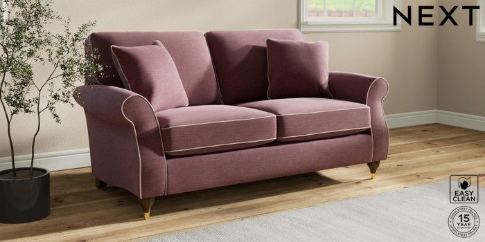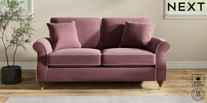 7.3.1 Buy Ashford 2 Seater Sofa Fine Chenille with Contrast Mid Mulberry Purple and Oyster Modern Turned Metal Cap - Mid from the Next UK online shop Click here to use our accessible website