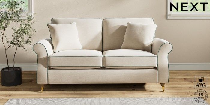 7.3.1 Buy Ashford 2 Seater Sofa Fine Chenille with Contrast Oyster and Dark Juniper Green Castor - Light from the Next UK online shop Click here to use our accessible website