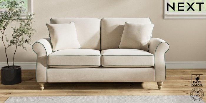 7.3.1 Buy Ashford 2 Seater Sofa Fine Chenille with Contrast Oyster and Dark Juniper Green Low Turned - Light from the Next UK online shop Click here to use our accessible website