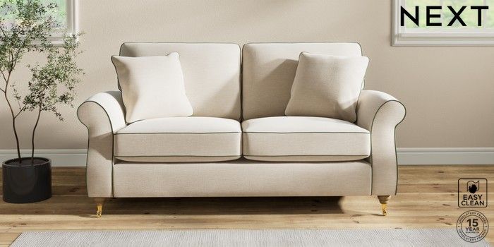 7.3.1 Buy Ashford 2 Seater Sofa Fine Chenille with Contrast Oyster and Mid Khaki Green Castor - Light from the Next UK online shop Click here to use our accessible website