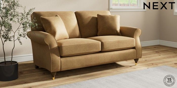 The Ashford sofa range embodies classic country style with its generous proportions and elegant scroll arms. It features ""Firmer Sit"" seat cushions, constructed with a high-density foam core and soft foam toppers. This design provides ultimate support, durability, and shape retention, while also offering a more tailored appearance. These cushions are low-maintenance and will naturally return to their shape when not in use. For extra comfort, we've included scatter cushions filled with a luxurious fibre mix. The seat cushions are also reversible, so we recommend rotating and plumping them regularly to keep them looking their best. Personalise your Ashford sofa by choosing from a vast array of fabric colors and a selection of feet options.