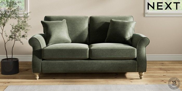6.12.1 Buy Ashford 2 Seater Sofa Luxe Chenille Mid Green Low Turned - Light from the Next UK online shop Click here to use our accessible website