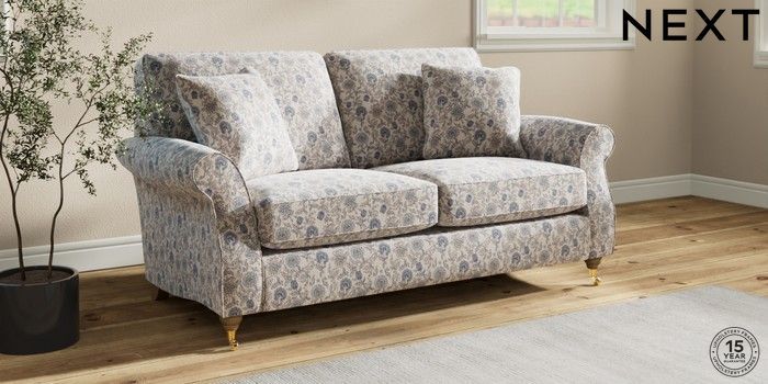 7.3.1 Buy Ashford 2 Seater Sofa Relaxed Linen Look Print Woodblock Floral Blue Castor - Light from the Next UK online shop Click here to use our accessible website