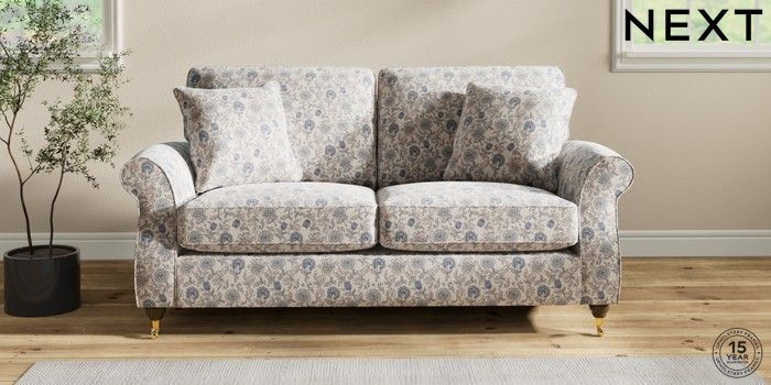 7.3.1 Buy Ashford 2 Seater Sofa Relaxed Linen Look Print Woodblock Floral Blue Castor - Mid from the Next UK online shop Click here to use our accessible website