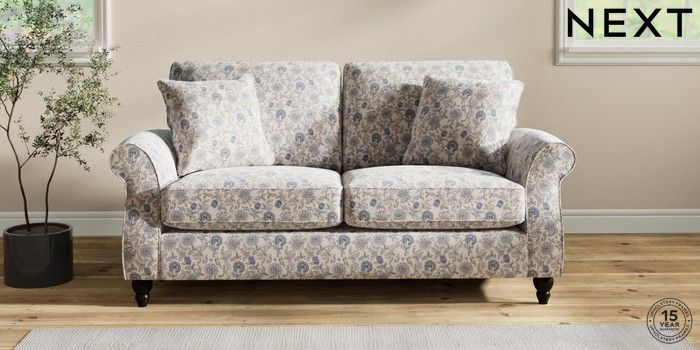 7.3.1 Buy Ashford 2 Seater Sofa Relaxed Linen Look Print Woodblock Floral Blue Low Turned - Dark from the Next UK online shop Click here to use our accessible website