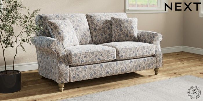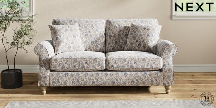 7.3.1 Buy Ashford 2 Seater Sofa Relaxed Linen Look Print Woodblock Floral Blue Low Turned - Light from the Next UK online shop Click here to use our accessible website