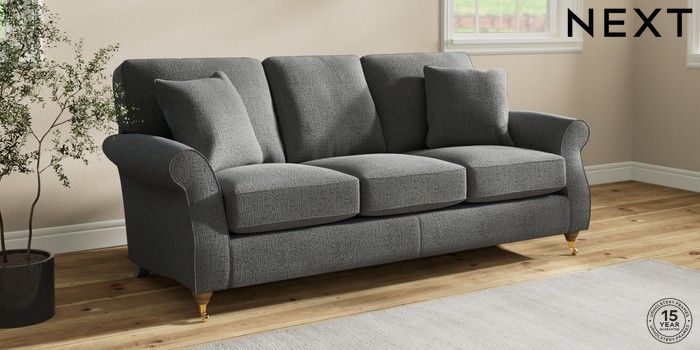 The Ashford sofa range embodies classic country style with its generous proportions and elegant scroll arms. It features ""Firmer Sit"" seat cushions, constructed with a high-density foam core and soft foam toppers. This design provides ultimate support, durability, and shape retention, while also offering a more tailored appearance. These cushions are low-maintenance and will naturally return to their shape when not in use. For extra comfort, we've included scatter cushions filled with a luxurious fibre mix. The seat cushions are also reversible, so we recommend rotating and plumping them regularly to keep them looking their best. Personalise your Ashford sofa by choosing from a vast array of fabric colors and a selection of feet options.