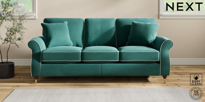 7.3.1 Buy Ashford 3 Cushion 3 Seater Sofa Fine Chenille with Contrast Dark Juniper Green and Oyster Castor - Mid from the Next UK online shop Click here to use our accessible website