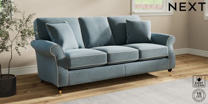7.3.1 Buy Ashford 3 Cushion 3 Seater Sofa Fine Chenille with Contrast Mid Blue and Oyster Castor - Dark from the Next UK online shop Click here to use our accessible website