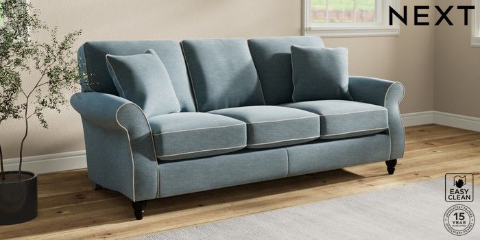 7.3.1 Buy Ashford 3 Cushion 3 Seater Sofa Fine Chenille with Contrast Mid Blue and Oyster Low Turned - Dark from the Next UK online shop Click here to use our accessible website