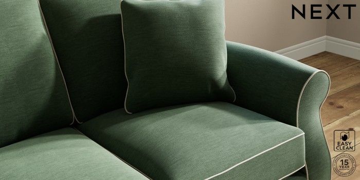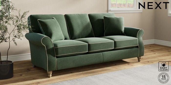 7.3.1 Buy Ashford 3 Cushion 3 Seater Sofa Fine Chenille with Contrast Mid Khaki Green and Oyster Low Turned - Light from the Next UK online shop Click here to use our accessible website