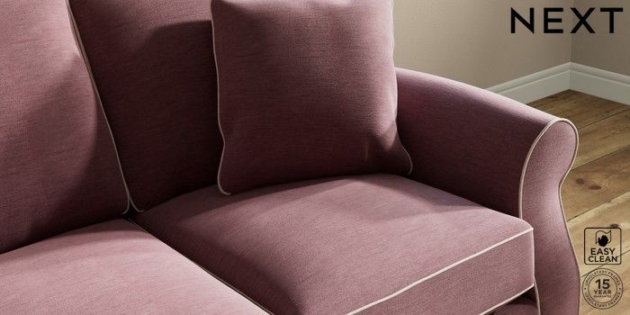 7.3.1 Buy Ashford 3 Cushion 3 Seater Sofa Fine Chenille with Contrast Mid Mulberry Purple and Oyster Modern Turned Metal Cap - Mid from the Next UK online shop