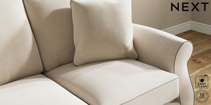 7.3.1 Buy Ashford 3 Cushion 3 Seater Sofa Fine Chenille with Contrast Oyster and Mid Blue Castor - Mid from the Next UK online shop Click here to use our accessible website