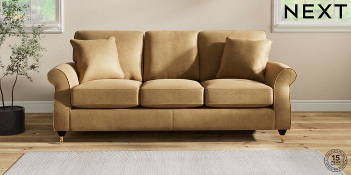6.12.1 Buy Ashford 3 Cushion 3 Seater Sofa Luxe Chenille Honey Yellow Castor - Dark from the Next UK online shop Click here to use our accessible website