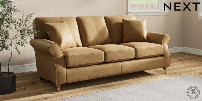 6.12.1 Buy Ashford 3 Cushion 3 Seater Sofa Luxe Chenille Honey Yellow Castor - Light from the Next UK online shop Click here to use our accessible website