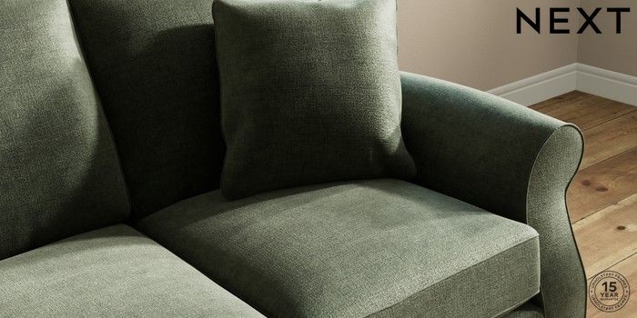 6.12.1 Buy Ashford 3 Cushion 3 Seater Sofa Luxe Chenille Mid Green Castor - Mid from the Next UK online shop Click here to use our accessible website