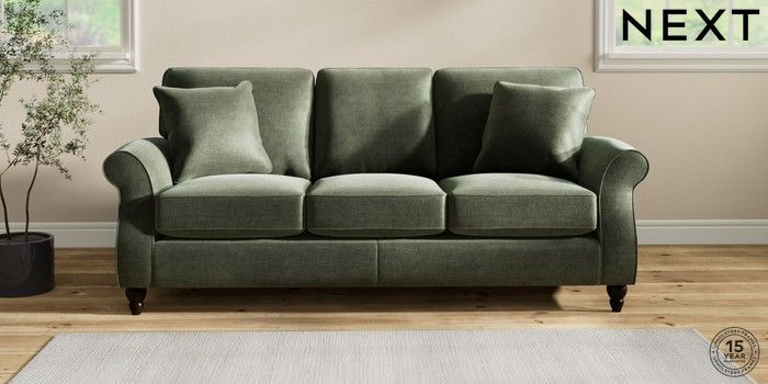 6.12.1 Buy Ashford 3 Cushion 3 Seater Sofa Luxe Chenille Mid Green Low Turned - Dark from the Next UK online shop Click here to use our accessible website