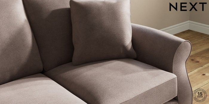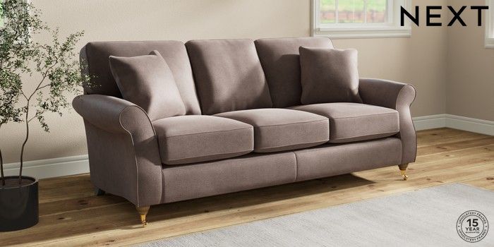 6.12.1 Buy Ashford 3 Cushion 3 Seater Sofa Luxe Chenille Mink Brown Castor - Light from the Next UK online shop Click here to use our accessible website