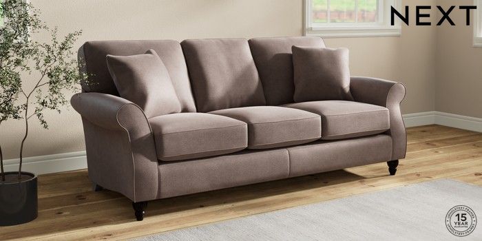 6.12.1 Buy Ashford 3 Cushion 3 Seater Sofa Luxe Chenille Mink Brown Low Turned - Dark from the Next UK online shop Click here to use our accessible website