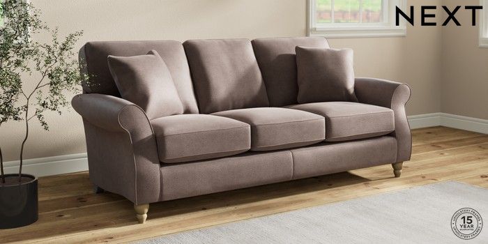 The Ashford sofa range embodies classic country style with its generous proportions and elegant scroll arms. It features ""Firmer Sit"" seat cushions, constructed with a high-density foam core and soft foam toppers. This design provides ultimate support, durability, and shape retention, while also offering a more tailored appearance. These cushions are low-maintenance and will naturally return to their shape when not in use. For extra comfort, we've included scatter cushions filled with a luxurious fibre mix. The seat cushions are also reversible, so we recommend rotating and plumping them regularly to keep them looking their best. Personalise your Ashford sofa by choosing from a vast array of fabric colors and a selection of feet options.
