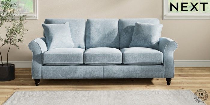 7.2.6 Buy Ashford 3 Cushion 3 Seater Sofa Plush Chenille Light Blue Low Turned - Dark from the Next UK online shop Click here to use our accessible website