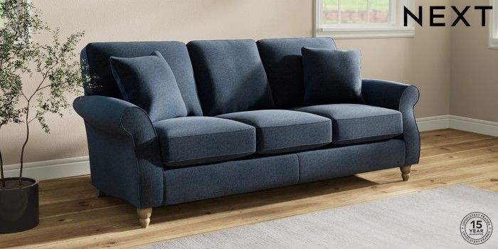 6.12.1 Buy Ashford 3 Cushion 3 Seater Sofa Ripple Chenille Dark Blue Low Turned - Light from the Next UK online shop Click here to use our accessible website