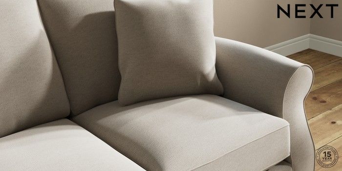 6.12.1 Buy Ashford 3 Cushion 3 Seater Sofa Ripple Chenille Light Natural Modern Turned Metal Cap - Mid from the Next UK online shop Click here to use our accessible website