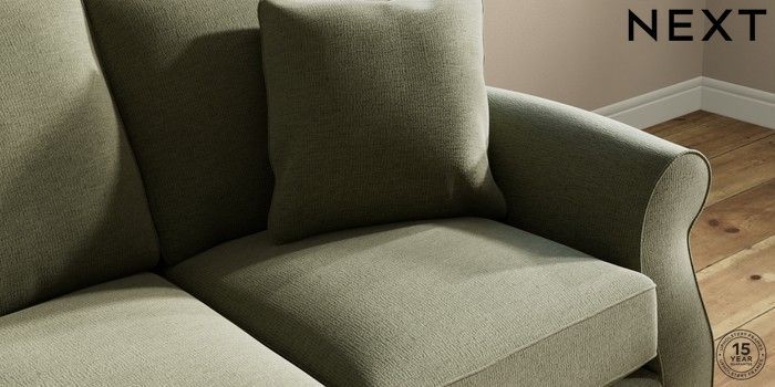 6.12.1 Buy Ashford 3 Cushion 3 Seater Sofa Ripple Chenille Mid Moss Green Castor - Dark from the Next UK online shop Click here to use our accessible website