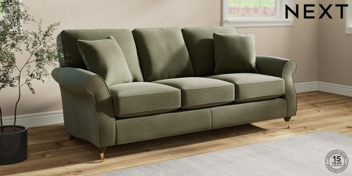6.12.1 Buy Ashford 3 Cushion 3 Seater Sofa Ripple Chenille Mid Moss Green Castor - Mid from the Next UK online shop Click here to use our accessible website