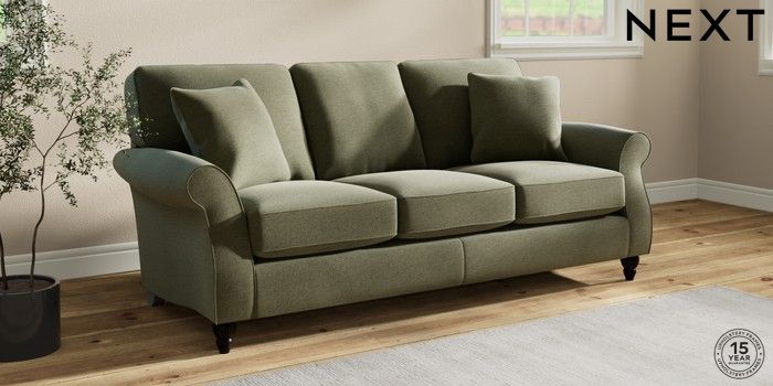 6.12.1 Buy Ashford 3 Cushion 3 Seater Sofa Ripple Chenille Mid Moss Green Low Turned - Dark from the Next UK online shop Click here to use our accessible website