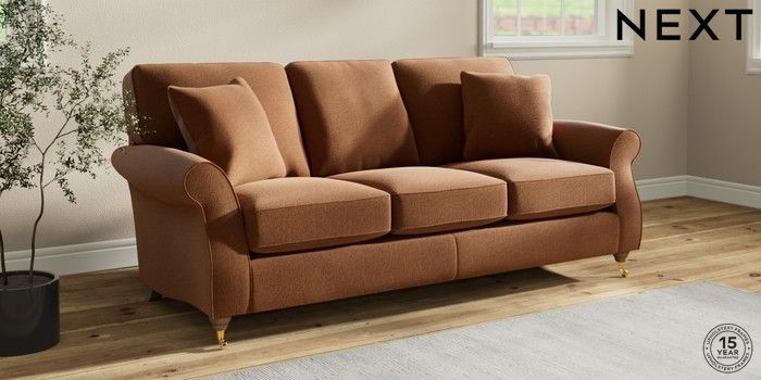 6.12.1 Buy Ashford 3 Cushion 3 Seater Sofa Ripple Chenille Mid Rust Brown Castor - Light from the Next UK online shop Click here to use our accessible website