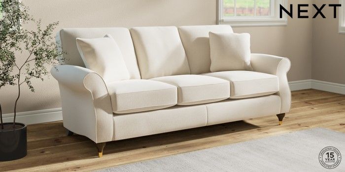 6.12.1 Buy Ashford 3 Cushion 3 Seater Sofa Ripple Chenille Oyster Modern Turned Metal Cap - Mid from the Next UK online shop Click here to use our accessible website