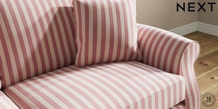7.3.1 Buy Ashford 3 Seater Sofa Bold Chenille Stripe Dark Pink Modern Turned Metal Cap - Mid from the Next UK online shop
