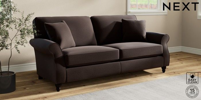 6.12.1 Buy Ashford 3 Seater Sofa Fine Chenille Easy Clean Chocolate Brown Low Turned - Dark from the Next UK online shop Click here to use our accessible website