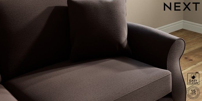 6.12.1 Buy Ashford 3 Seater Sofa Fine Chenille Easy Clean Chocolate Brown Modern Turned Metal Cap - Mid from the Next UK online shop Click here to use our accessible website