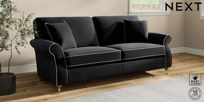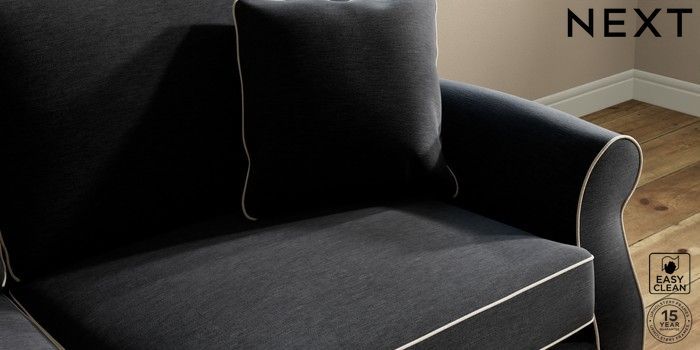 7.3.1 Buy Ashford 3 Seater Sofa Fine Chenille with Contrast Black and Oyster Castor - Light from the Next UK online shop Click here to use our accessible website