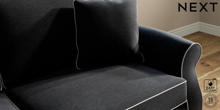7.3.1 Buy Ashford 3 Seater Sofa Fine Chenille with Contrast Black and Oyster Low Turned - Mid from the Next UK online shop Click here to use our accessible website