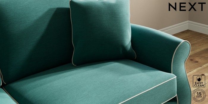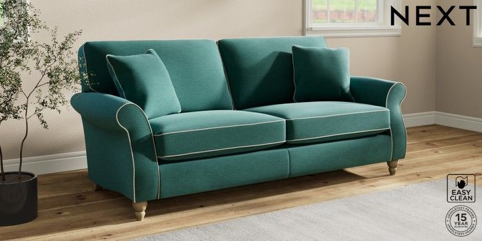 7.3.1 Buy Ashford 3 Seater Sofa Fine Chenille with Contrast Dark Juniper Green and Oyster Low Turned - Light from the Next UK online shop Click here to use our accessible website