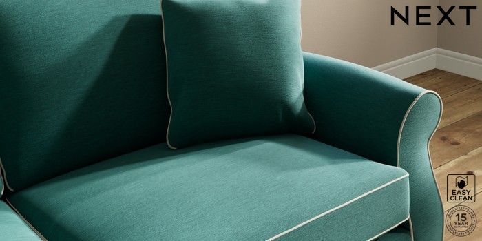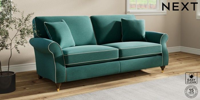 7.3.1 Buy Ashford 3 Seater Sofa Fine Chenille with Contrast Dark Juniper Green and Oyster Modern Turned Metal Cap - Mid from the Next UK online shop Click here to use our accessible website