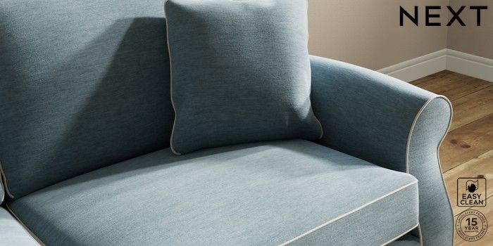 7.3.1 Buy Ashford 3 Seater Sofa Fine Chenille with Contrast Mid Blue and Oyster Castor - Dark from the Next UK online shop Click here to use our accessible website