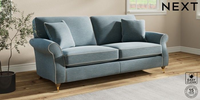 7.3.1 Buy Ashford 3 Seater Sofa Fine Chenille with Contrast Mid Blue and Oyster Castor - Light from the Next UK online shop Click here to use our accessible website