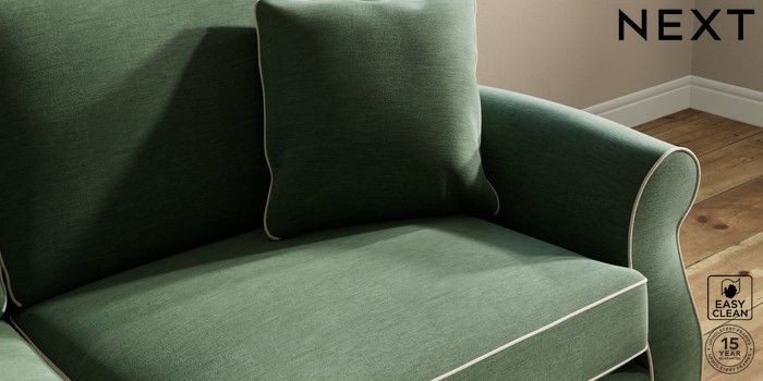 7.3.1 Buy Ashford 3 Seater Sofa Fine Chenille with Contrast Mid Khaki Green and Oyster Castor - Mid from the Next UK online shop Click here to use our accessible website