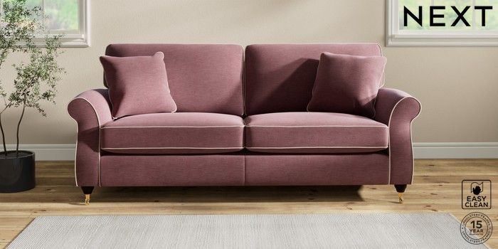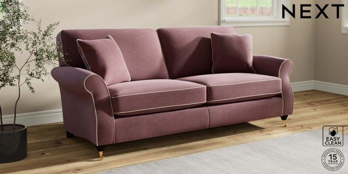 7.3.1 Buy Ashford 3 Seater Sofa Fine Chenille with Contrast Mid Mulberry Purple and Oyster Castor - Dark from the Next UK online shop Click here to use our accessible website