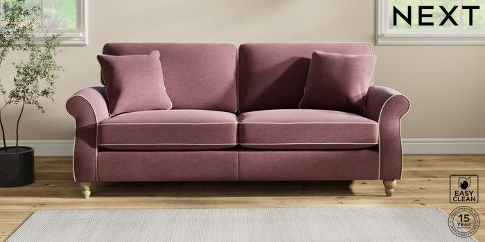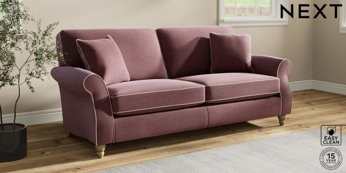 7.3.1 Buy Ashford 3 Seater Sofa Fine Chenille with Contrast Mid Mulberry Purple and Oyster Low Turned - Light from the Next UK online shop Click here to use our accessible website