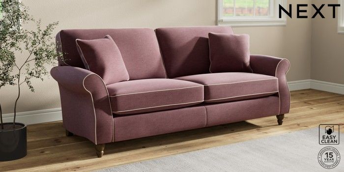 7.3.1 Buy Ashford 3 Seater Sofa Fine Chenille with Contrast Mid Mulberry Purple and Oyster Low Turned - Mid from the Next UK online shop Click here to use our accessible website