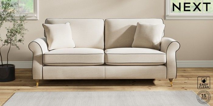 7.3.1 Buy Ashford 3 Seater Sofa Fine Chenille with Contrast Oyster and Black Castor - Light from the Next UK online shop Click here to use our accessible website