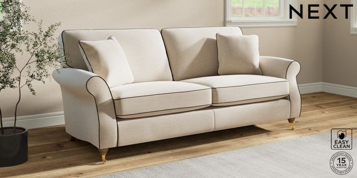 7.3.1 Buy Ashford 3 Seater Sofa Fine Chenille with Contrast Oyster and Chocolate Brown Castor - Light from the Next UK online shop Click here to use our accessible website