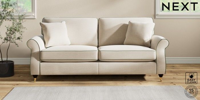 7.3.1 Buy Ashford 3 Seater Sofa Fine Chenille with Contrast Oyster and Mid Khaki Green Castor - Dark from the Next UK online shop Click here to use our accessible website