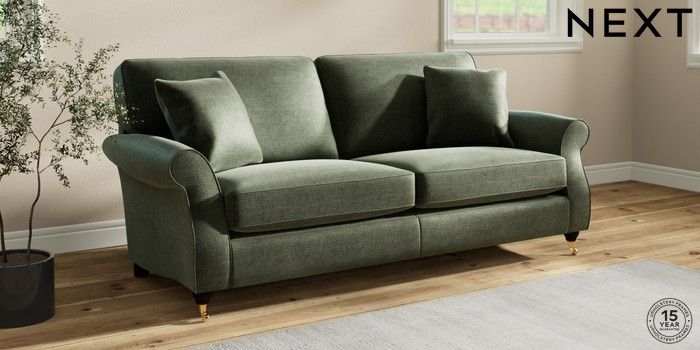 6.12.1 Buy Ashford 3 Seater Sofa Luxe Chenille Mid Green Castor - Dark from the Next UK online shop Click here to use our accessible website