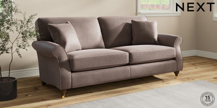 6.12.1 Buy Ashford 3 Seater Sofa Luxe Chenille Mink Brown Modern Turned Metal Cap - Mid from the Next UK online shop Click here to use our accessible website